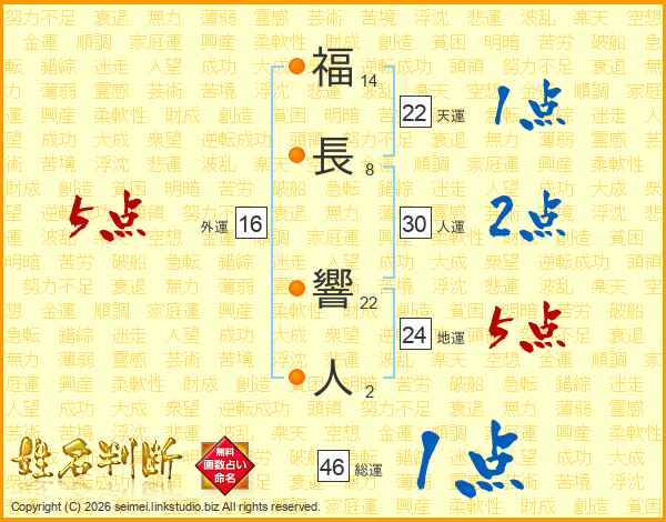福(14画)長(8画) 響(22画)人(2画)