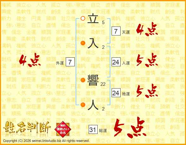 立入響人さんの総運は31画の5点!