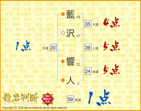 藍沢響人さんの総運は59画の1点!