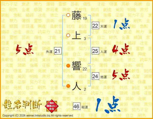 藤上響人さんの人運は25画の4点!