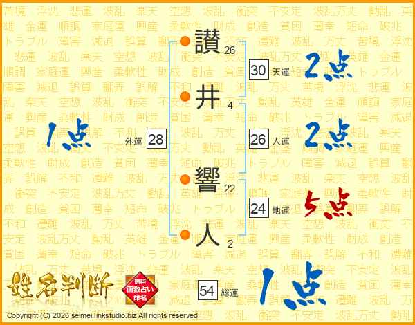 讃(26画)井(4画) 響(22画)人(2画)