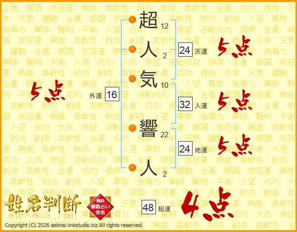 超人気響人さんの総運は48画の4点!