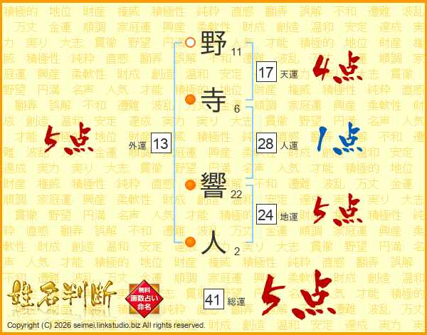 野寺響人さんの天運は17画の4点!