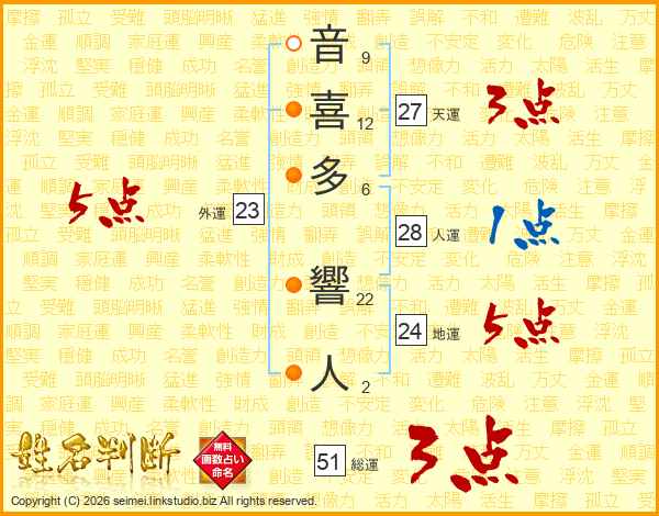 音喜多響人さんの総運は51画の3点!