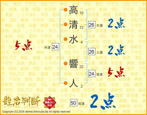 高清水響人さんの天運は26画の2点!