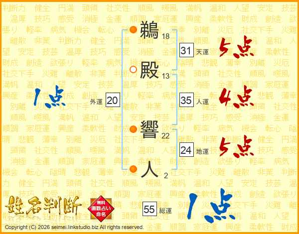 鵜殿響人さんの総運は55画の1点!