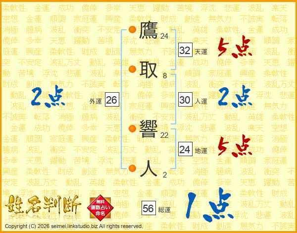 鷹取響人さんの外運は26画の2点!