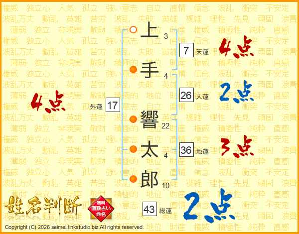 上手響太郎さんの人運は26画の2点!