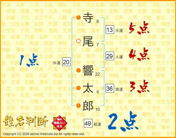 寺尾響太郎さんの天運は13画の5点!