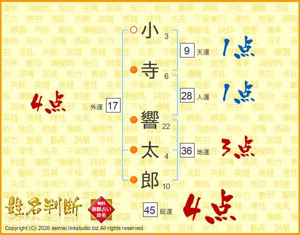 小寺響太郎さんの総運は45画の4点!