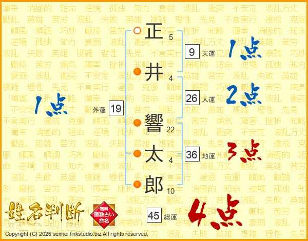 正井響太郎さんの総運は45画の4点!