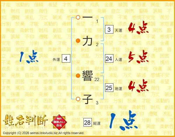 一力響子さんの地運は25画の4点!