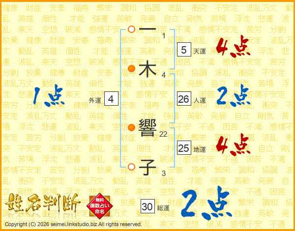 一(1画)木(4画) 響(22画)子(3画)