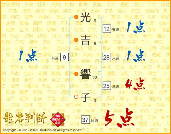 光吉響子さんの総運は37画の5点!