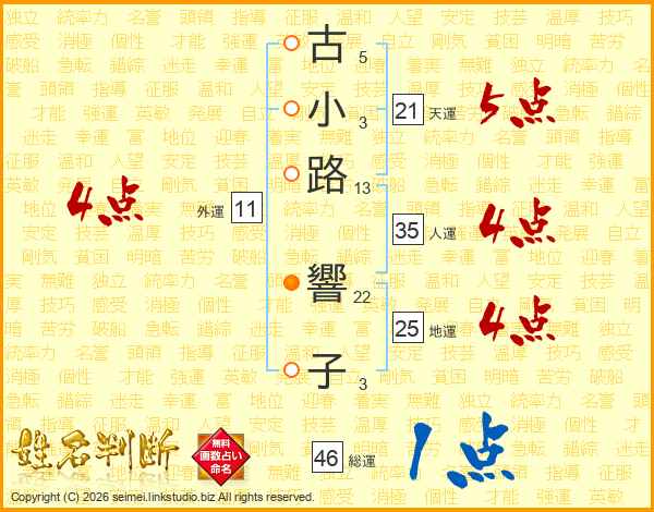古小路響子さんの地運は25画の4点!