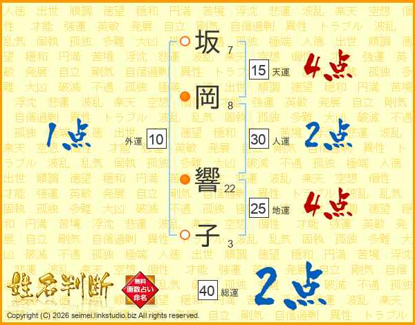 坂岡響子さんの総運は40画の2点!