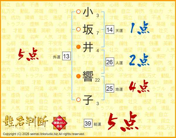 小坂井響子さんの総運は39画の5点!