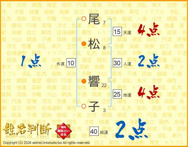 尾松響子さんの総運は40画の2点!