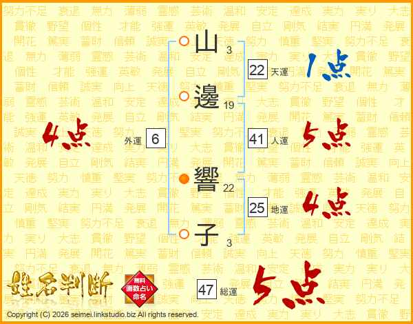 山邊響子さんの総運は47画の5点!