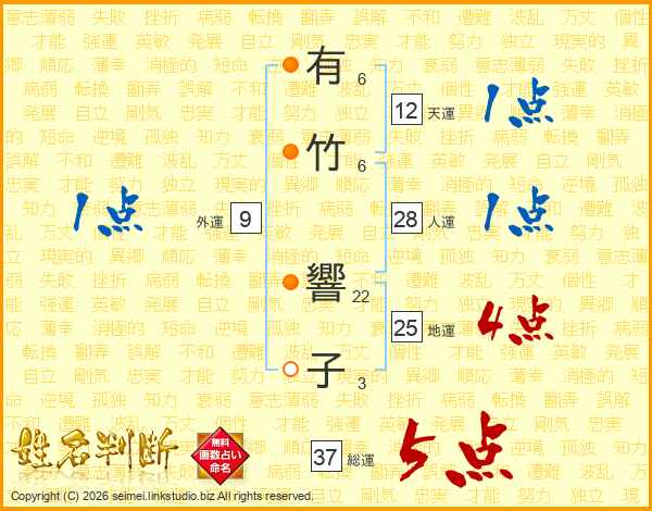 有(6画)竹(6画) 響(22画)子(3画)