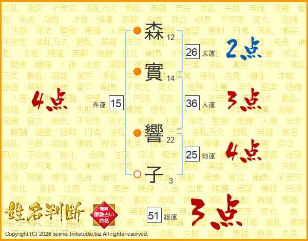 森實響子さんの天運は26画の2点!