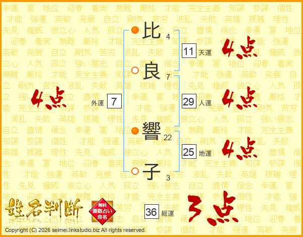 比(4画)良(7画) 響(22画)子(3画)