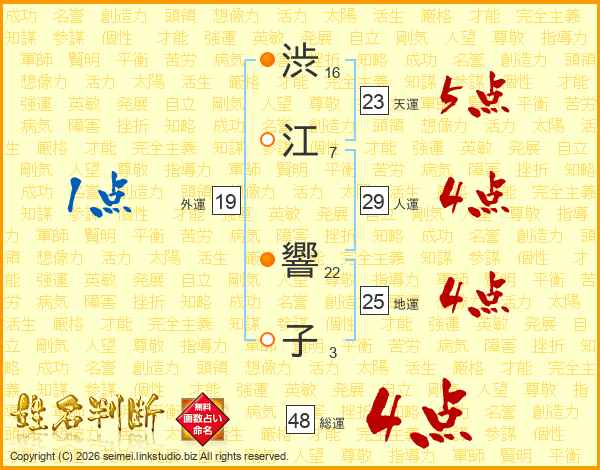 渋江響子さんの総運は48画の4点!