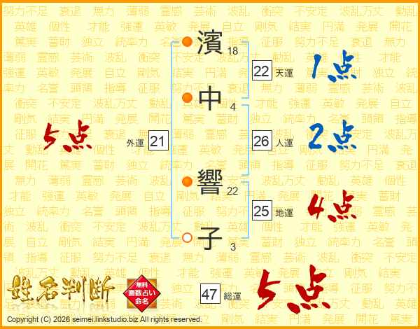 濱中響子さんの総運は47画の5点!
