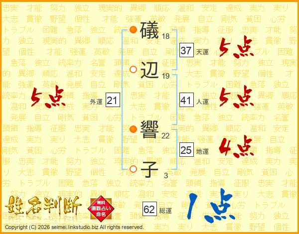 礒辺響子さんの総運は62画の1点!