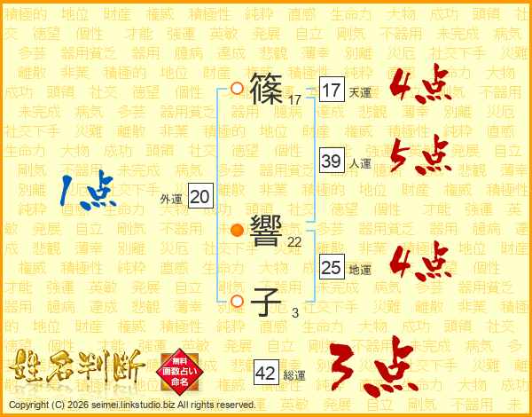 篠(17画) 響(22画)子(3画)