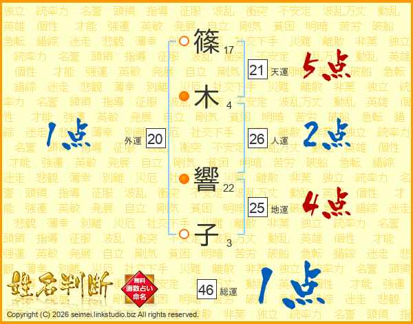 篠(17画)木(4画) 響(22画)子(3画)
