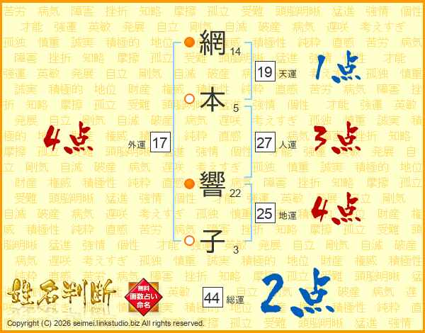 網本響子さんの総運は44画の2点!