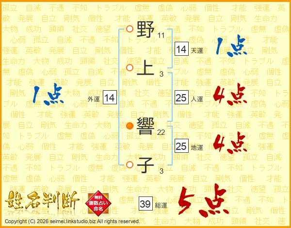 野上響子さんの地運は25画の4点!