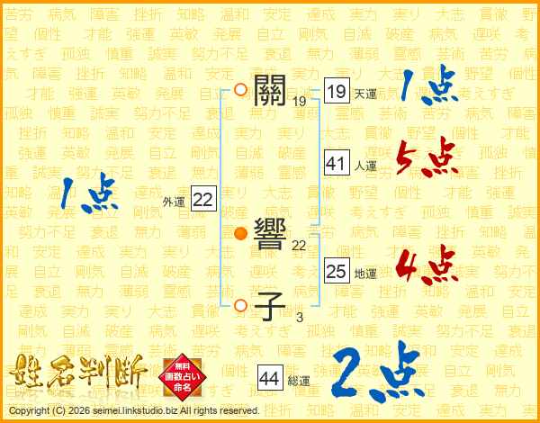 關(19画) 響(22画)子(3画)