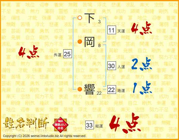 下岡響さんの天運は11画の4点!