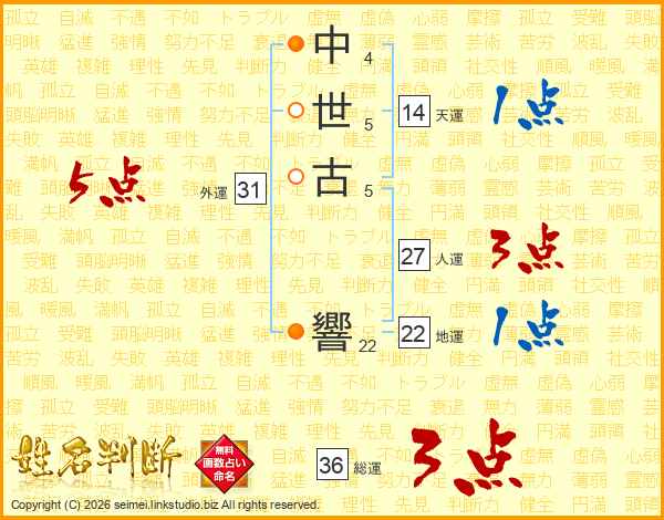 中(4画)世(5画)古(5画) 響(22画)