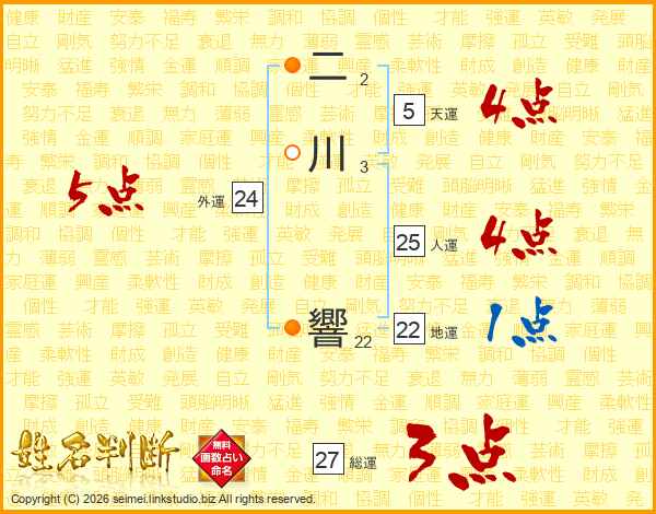 二川響さんの総運は27画の3点!