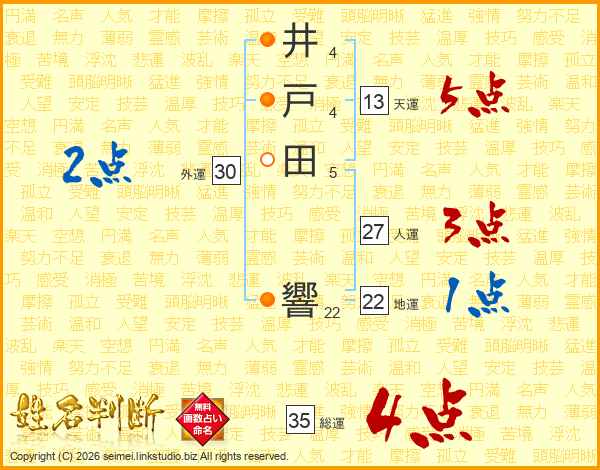 井戸田響さんの総運は35画の4点!