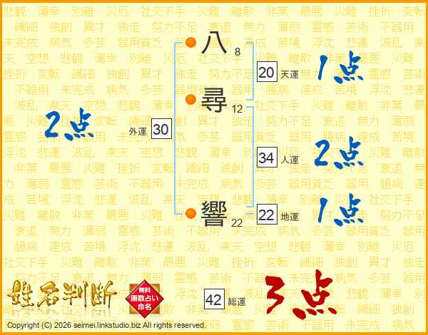 八尋響さんの総運は42画の3点!