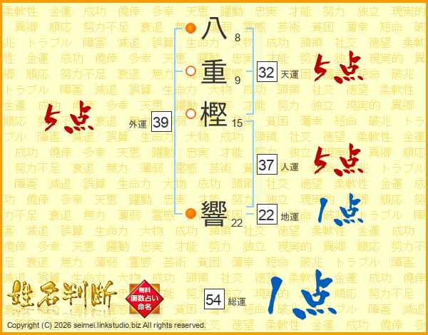 八重樫響さんの総運は54画の1点!