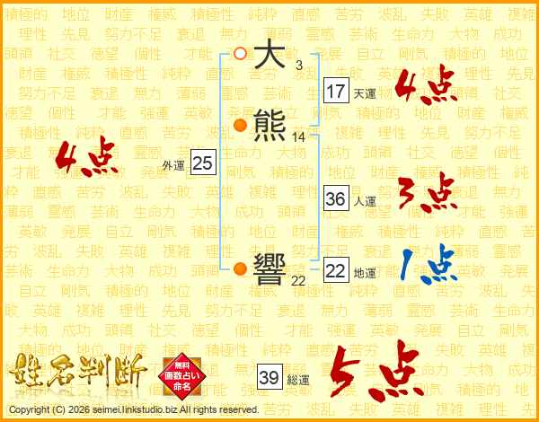 大熊響さんの総運は39画の5点!