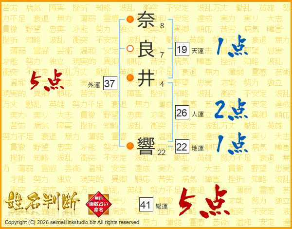 奈良井響さんの総運は41画の5点!