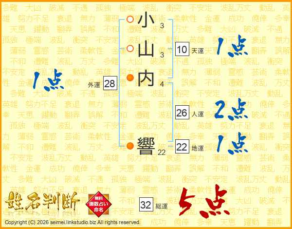 小山内響さんの総運は32画の5点!