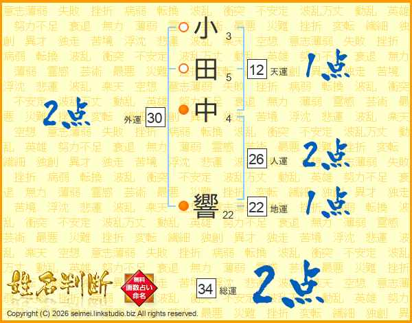 小田中響さんの人運は26画の2点!