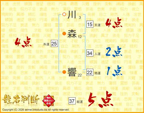 川森響さんの総運は37画の5点!