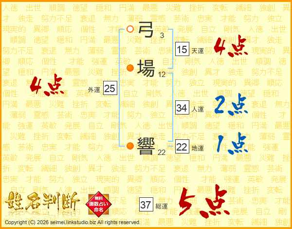 弓場響さんの総運は37画の5点!