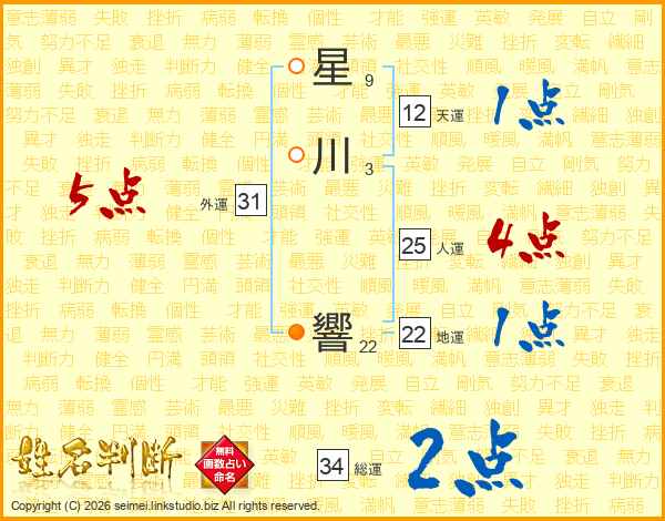 星(9画)川(3画) 響(22画)