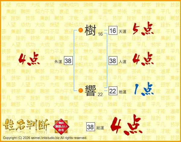 樹響さんの総運は38画の4点!