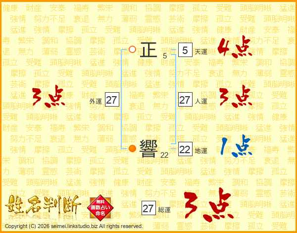正響さんの総運は27画の3点!