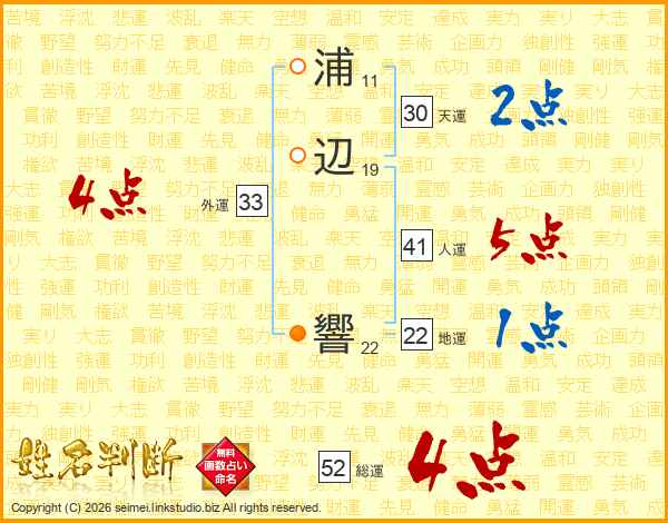 浦辺響さんの総運は52画の4点!